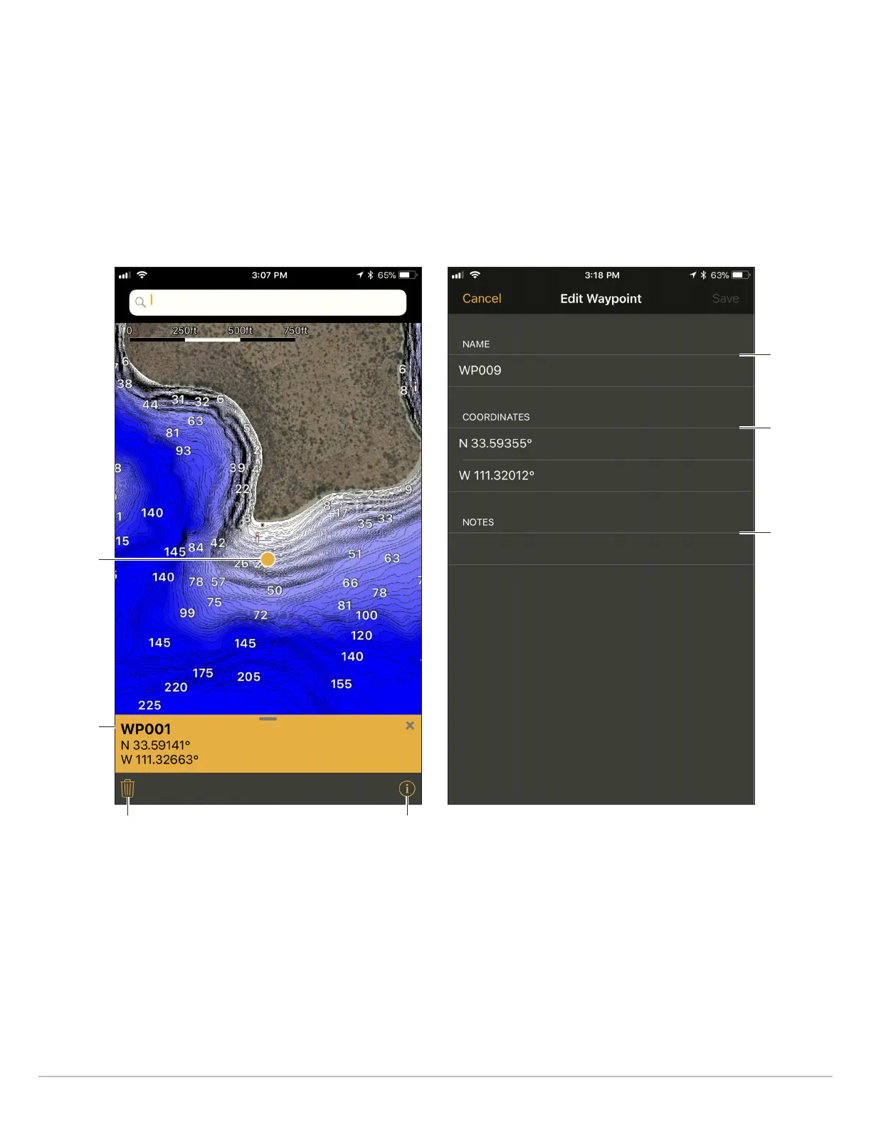 2. Apple iOS: Select the waypoint. Tap Show/Hide.