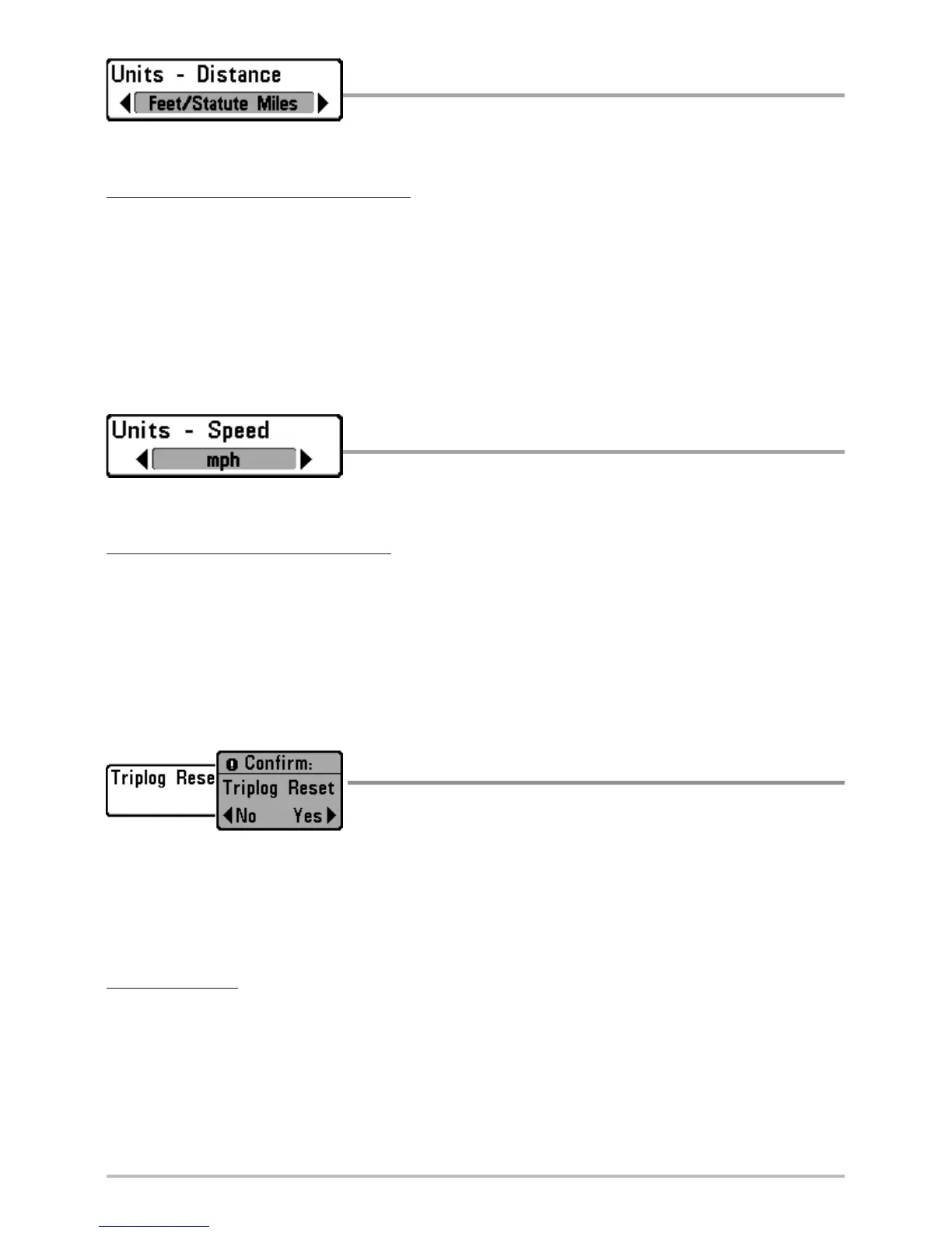 3. The Confirm dialog box will appear. To reset the Triplog, press the RIGHT Cursor key