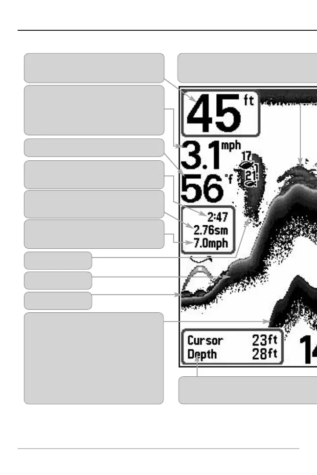 Depth - water depth; can be set to alarm
