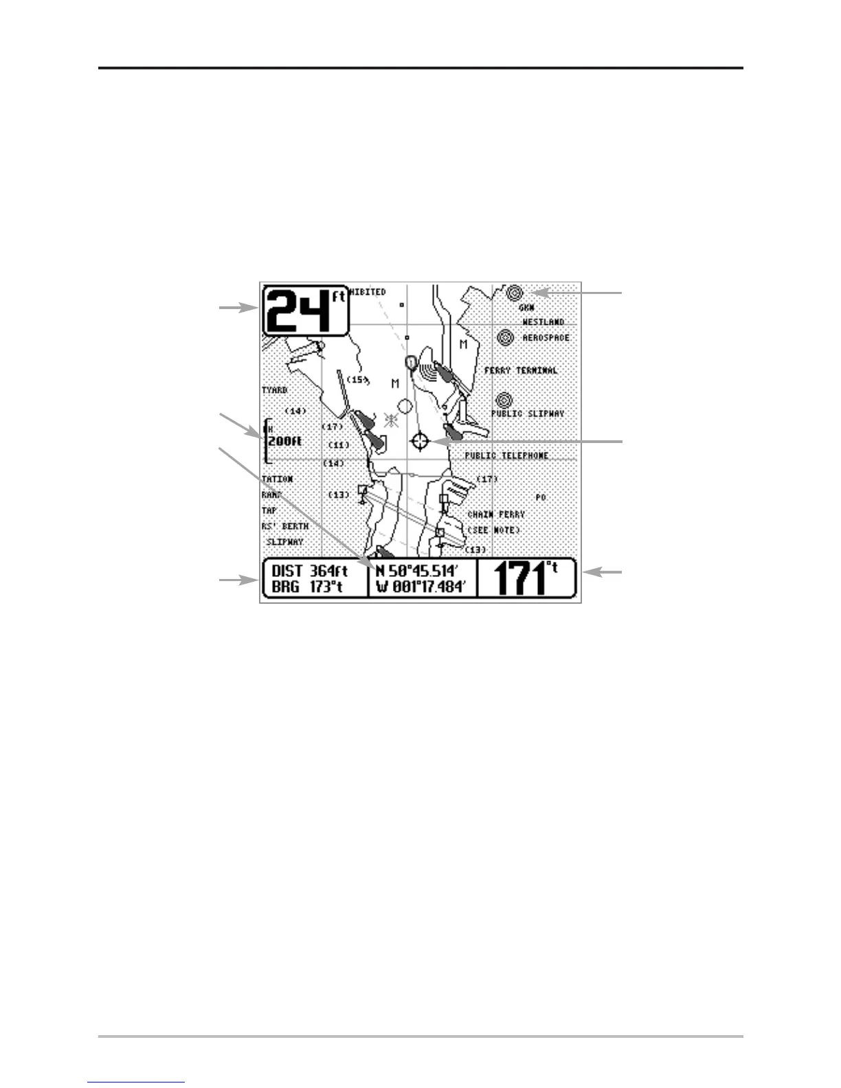 current route (when navigating), are overlaid on the chart. You can use the 4-WAY Cursor Control key