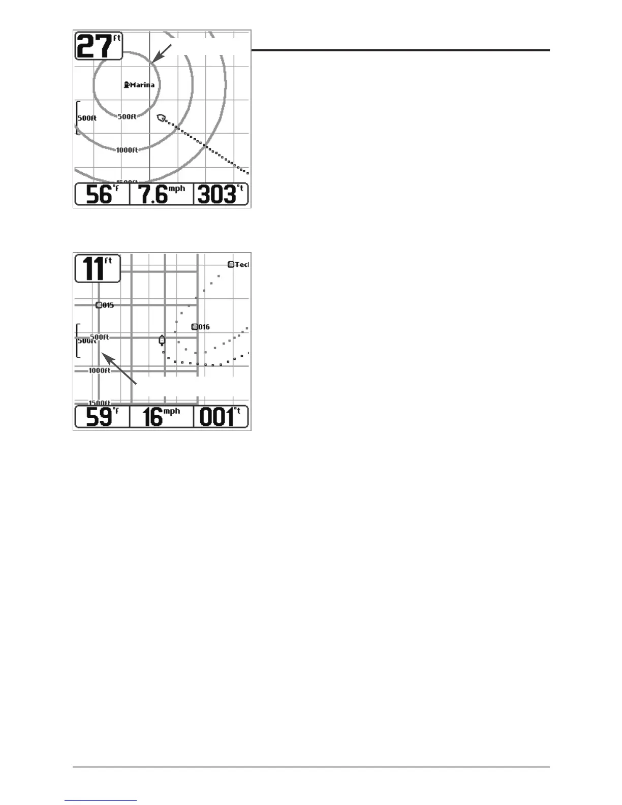 NOTE: The spacing of the rings on the waypoint target and the spacing of the grid lines on the trolling