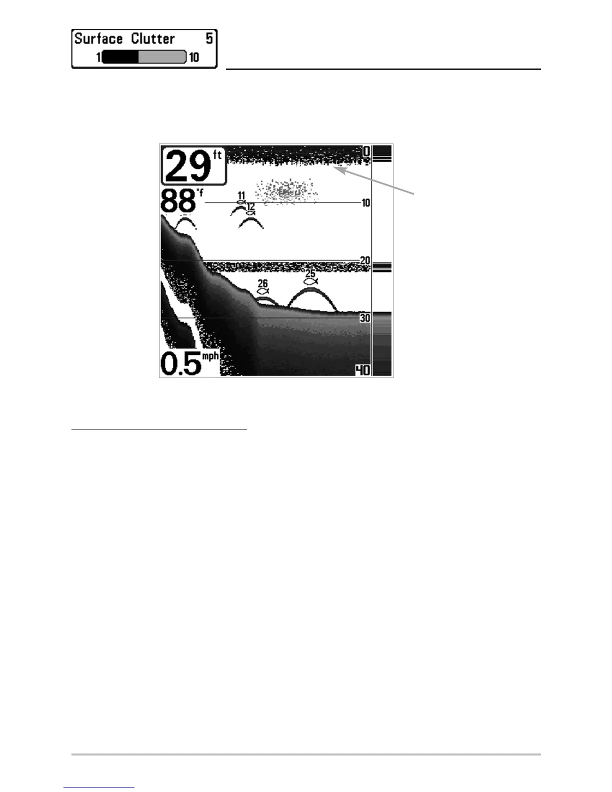 Surface Clutter adjusts the filter that removes surface clutter noise caused by algae and aeration. The