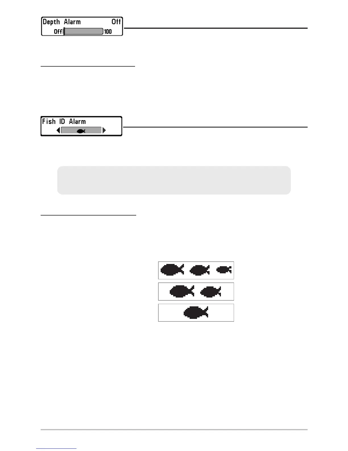 that correspond to the alarm setting. Fish ID Alarm will only sound if