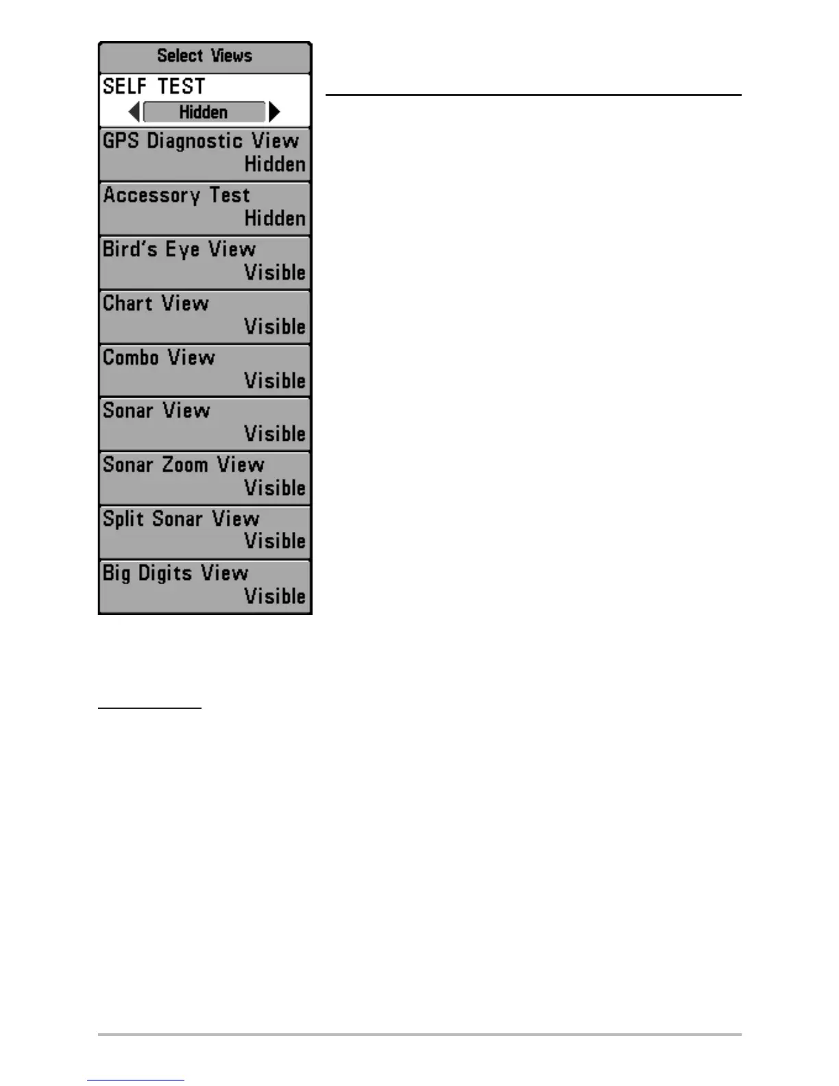 visible. Use the UP or DOWN Cursor keys to select a particular view, then use the RIGHT or