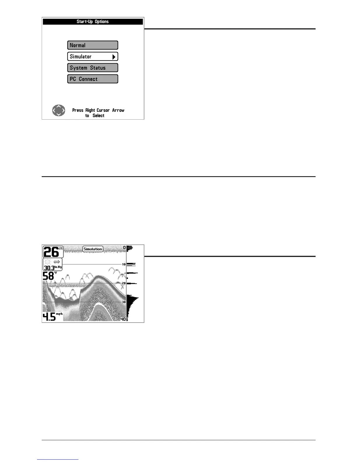 if a transducer is not connected and you do nothing during power up). Manually selecting Simulator from