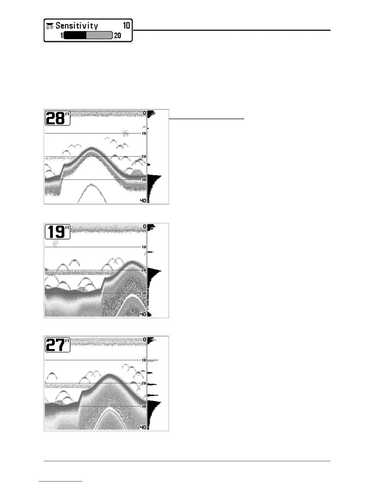 Sensitivity is adjusted too low, the display may not show many sonar returns that could be fish.
