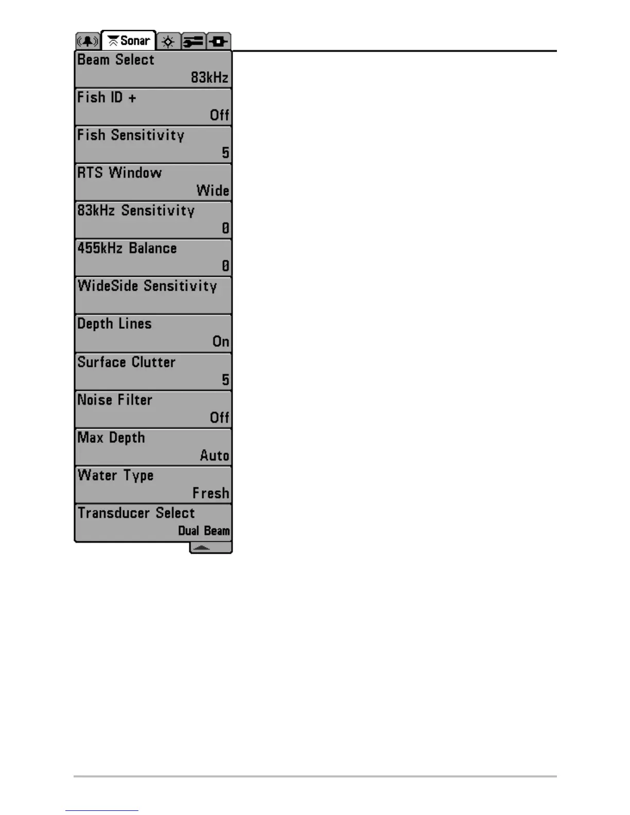 Humminbird Matrix 97 - Sonar Menu Tab