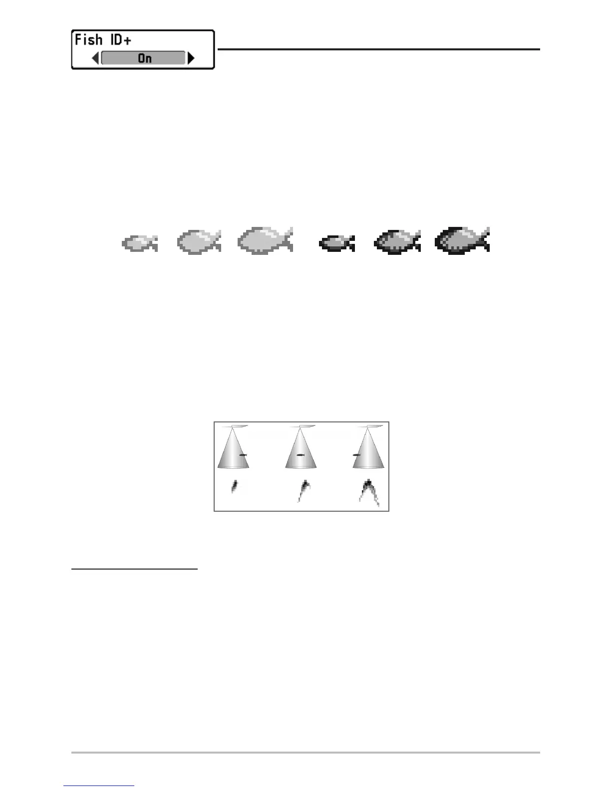 a fish. Three different fish size icons represent the intensity of the sonar return, and provide an