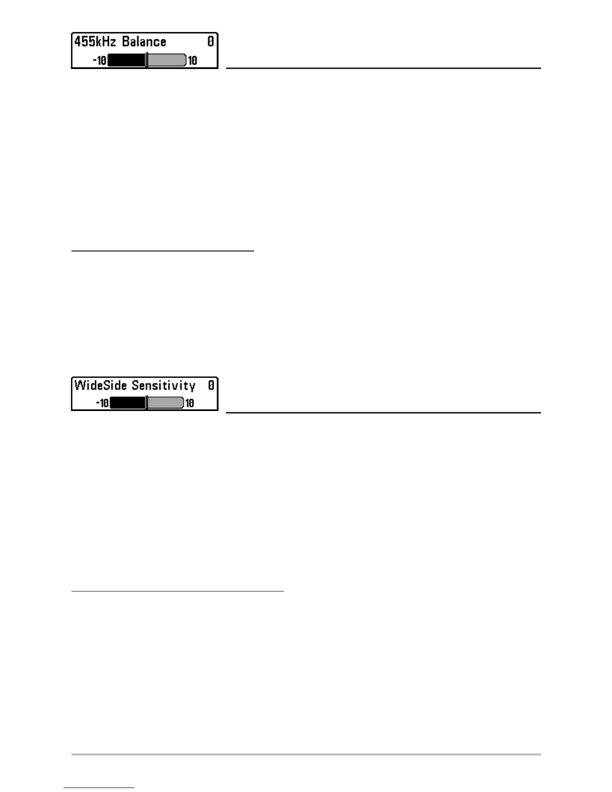 455 kHz Balance adjusts the sensitivity of the 455 kHz beam. Increasing the sensitivity will display
