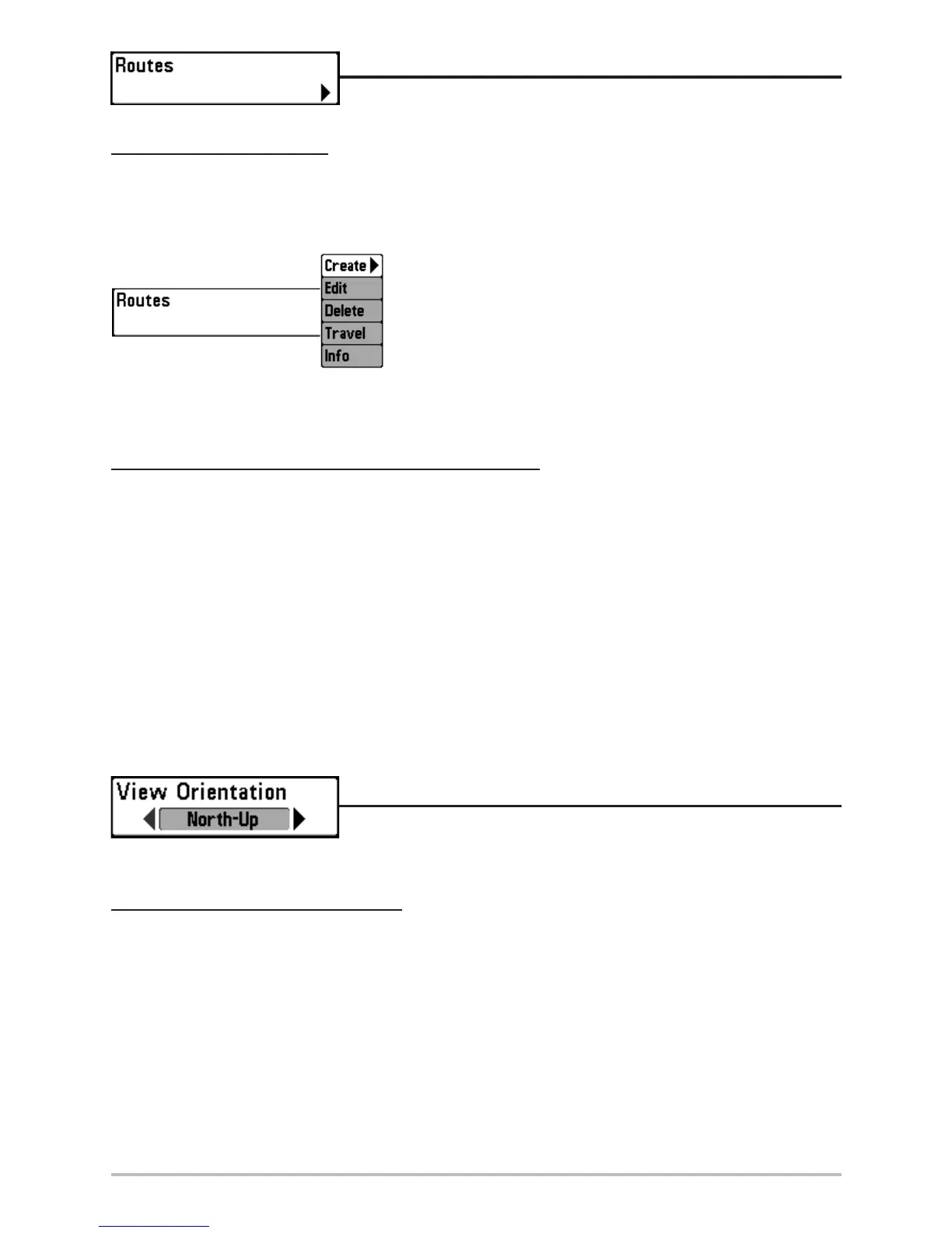 The Routes Submenu contains the following menu choices: