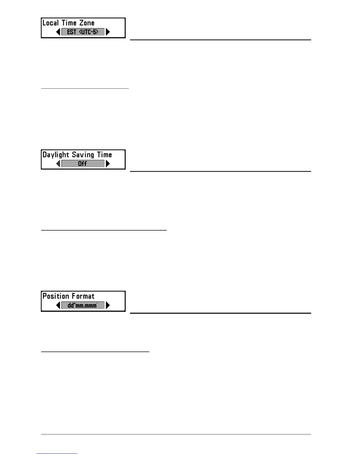 Local Time Zone selects your time zone in reference to the time reported by the GPS receiver when