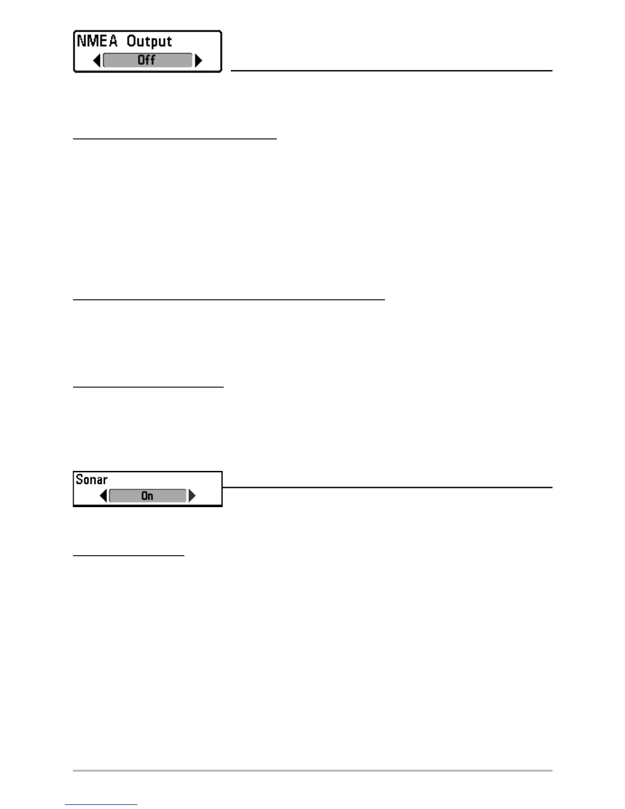 2. Use the LEFT or RIGHT 4-WAY Cursor Control keys to change the NMEA Output to On or Off