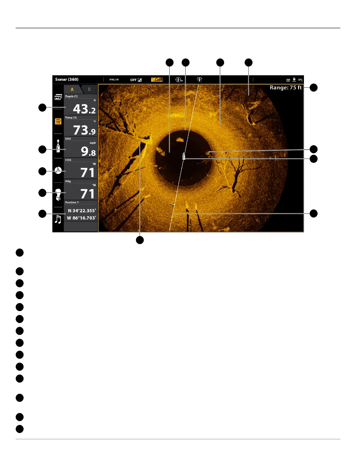 Boat Icon: The boat icon can be set to hidden or visible on the view. See Change the 360 View Display Settings.