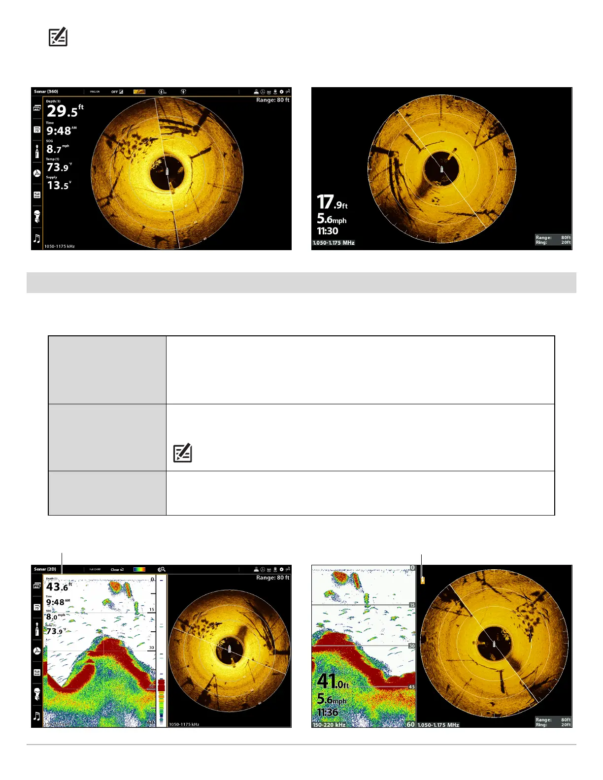 Sonar Use the 2D traditional Sonar View with the 360 View to maximize your sonar data.