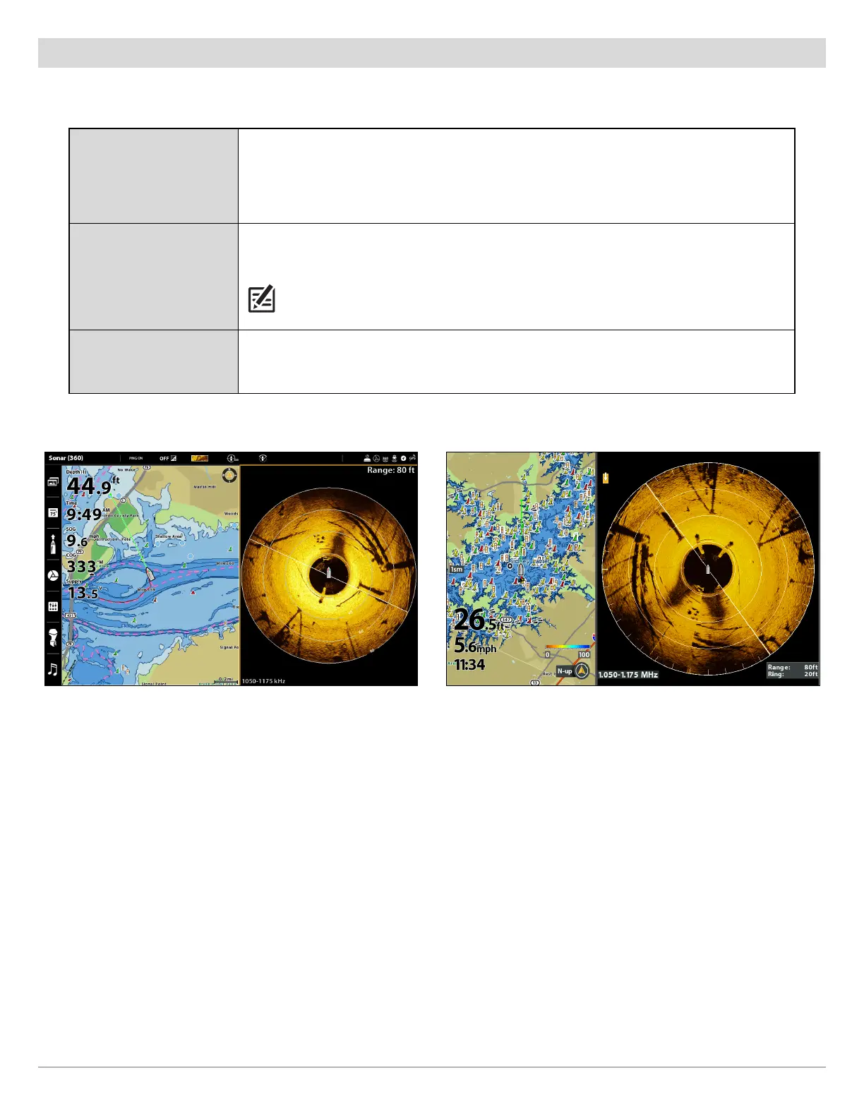 The 360/Chart Combo View shows chart information and 360 Imaging sonar information in a combination split screen, where the