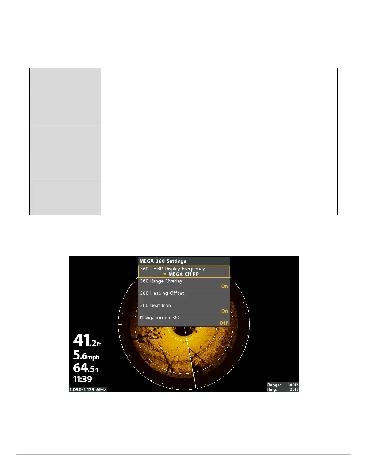 360 Range Overlay Select On to display the range rings on the view, or select Off to hide the range rings.