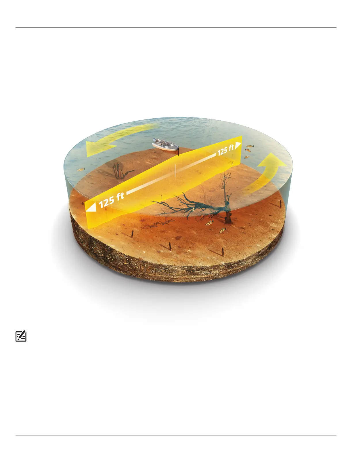 sonar wall extending 125 feet in every direction around your boat. This wall rotates to create a 250-foot circle. The beams are wide