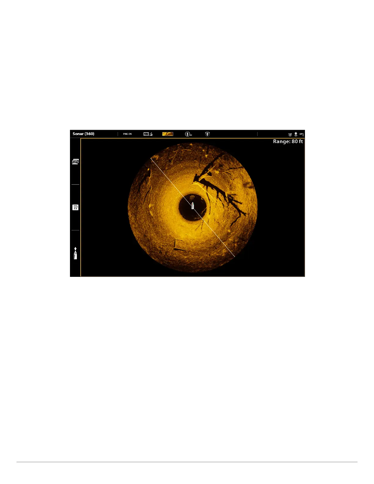 The sweep line on the MEGA 360 Imaging display reveals detailed sonar returns in real time. The historical returns remain on the