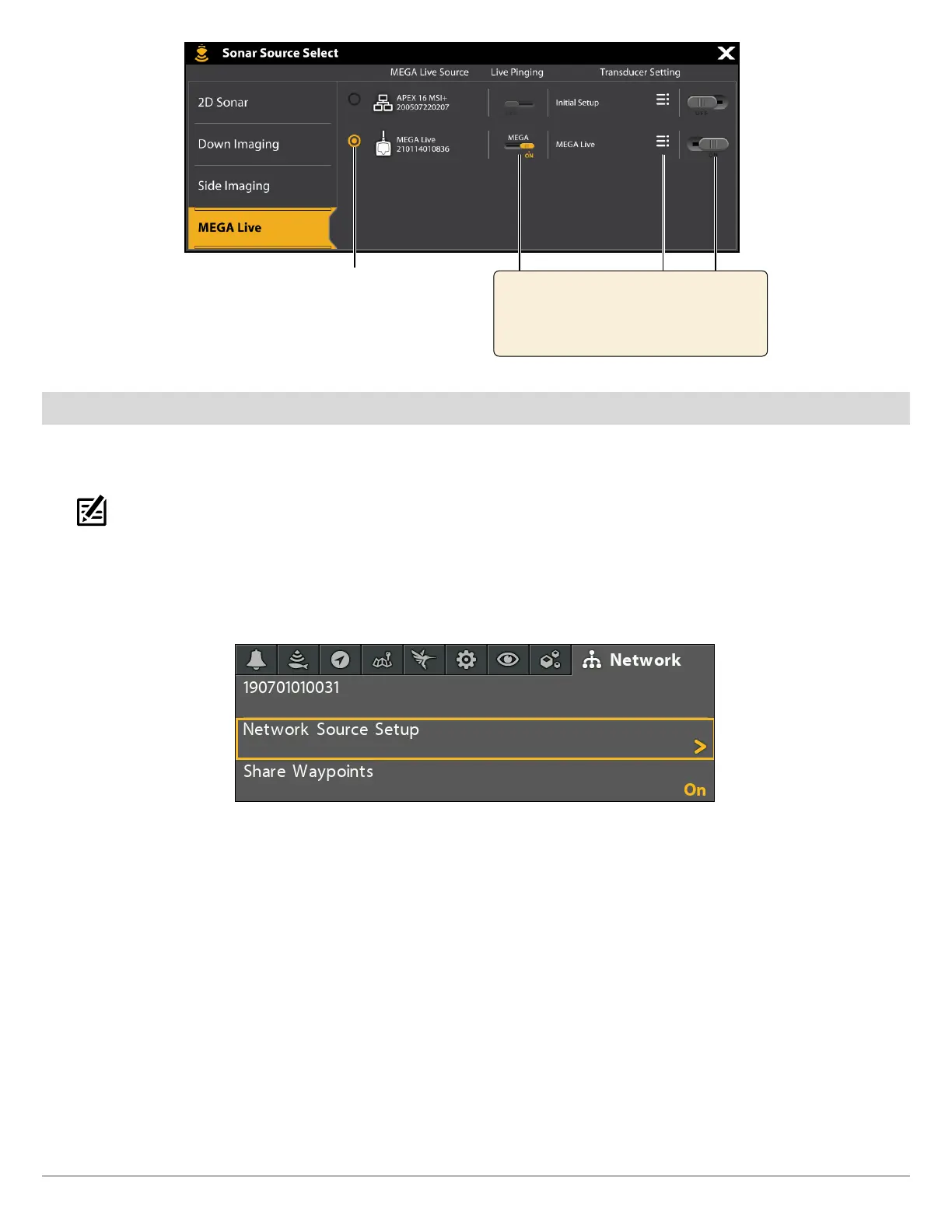 3. Select Network Source Setup. Press the RIGHT Cursor key.