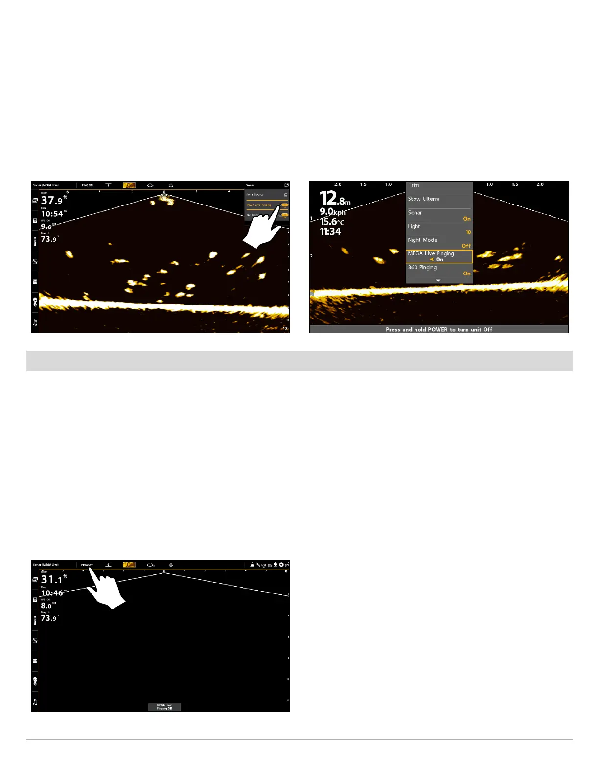 on-screen, press the MENU key once, or tap Sonar (MEGA