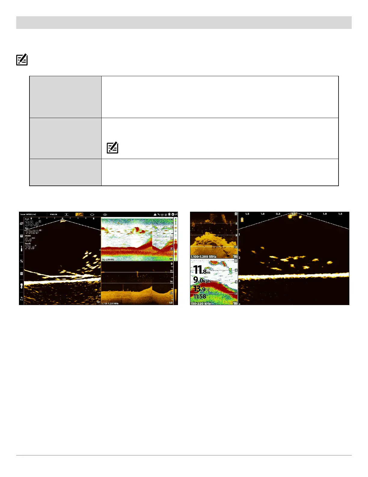 NOTE: This view is not available as a default view on APEX and SOLIX models. To create a custom MEGA Live/2D Sonar/Down Imaging Combo