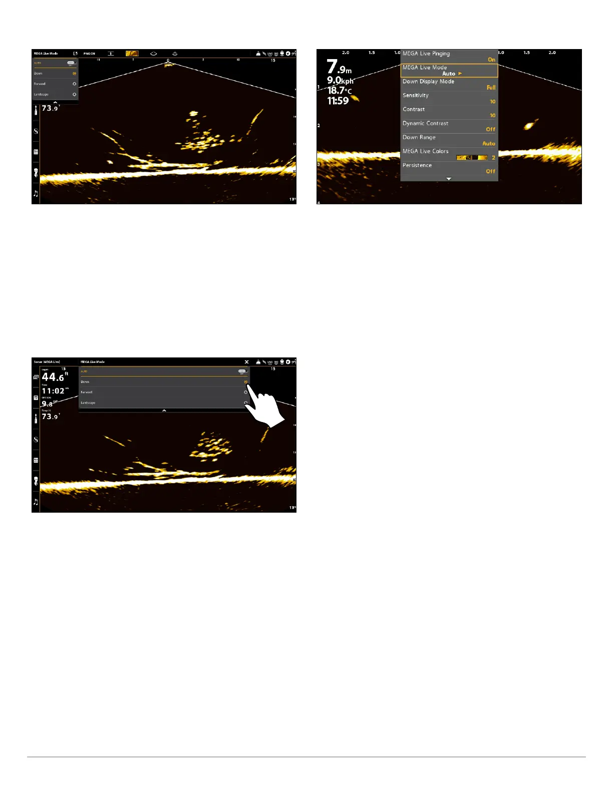 When you manually change the MEGA Live Mode, a dialog box will display reminding you to also change the transducer’s