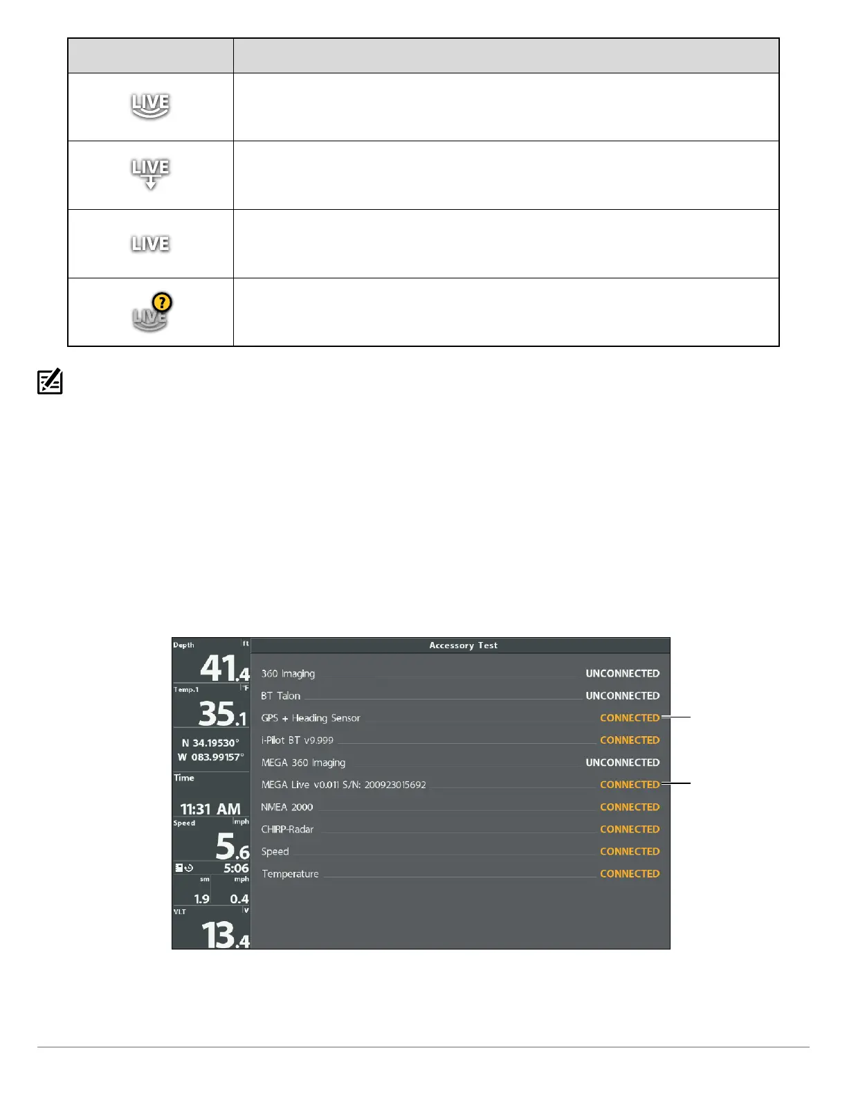 You can confirm the MEGA Live connection by checking the Accessory Test view.