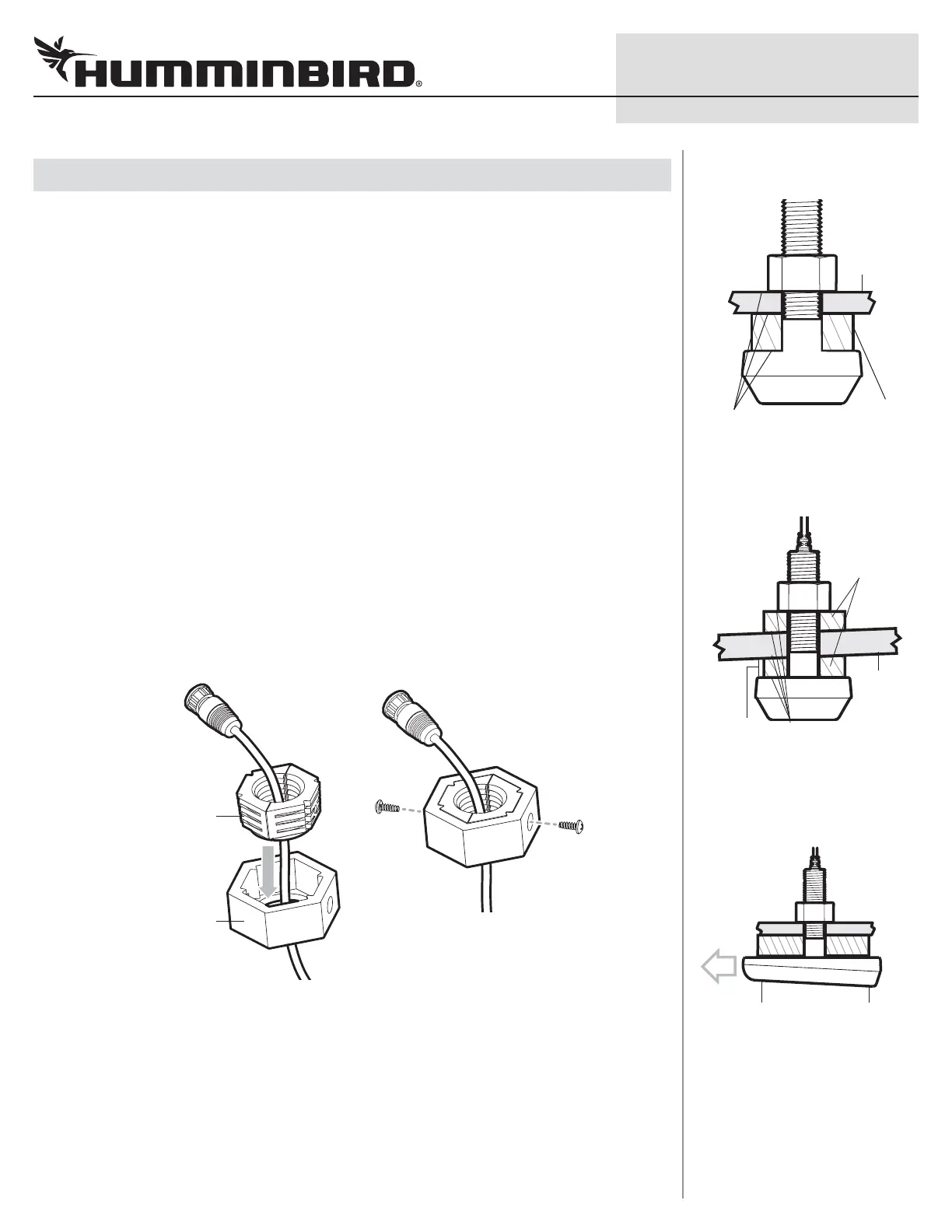 1. Feed the transducer cable through the drilled hole, then temporarily install the transducer to