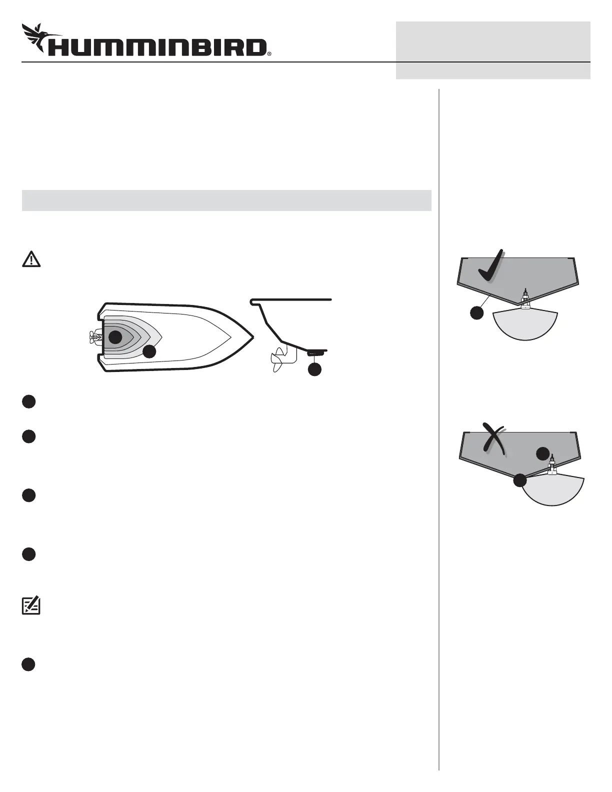 côtés du transducteur. Le transducteur doit être monté à l'avant des hélices sur les bateaux
