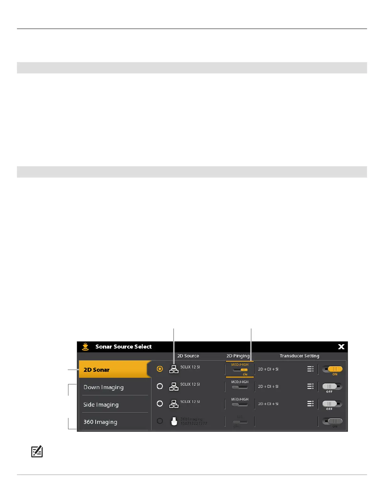 NOTE: For more information about the Sonar Source Select dialog box, see Set up your Humminbird Network: Select Sonar