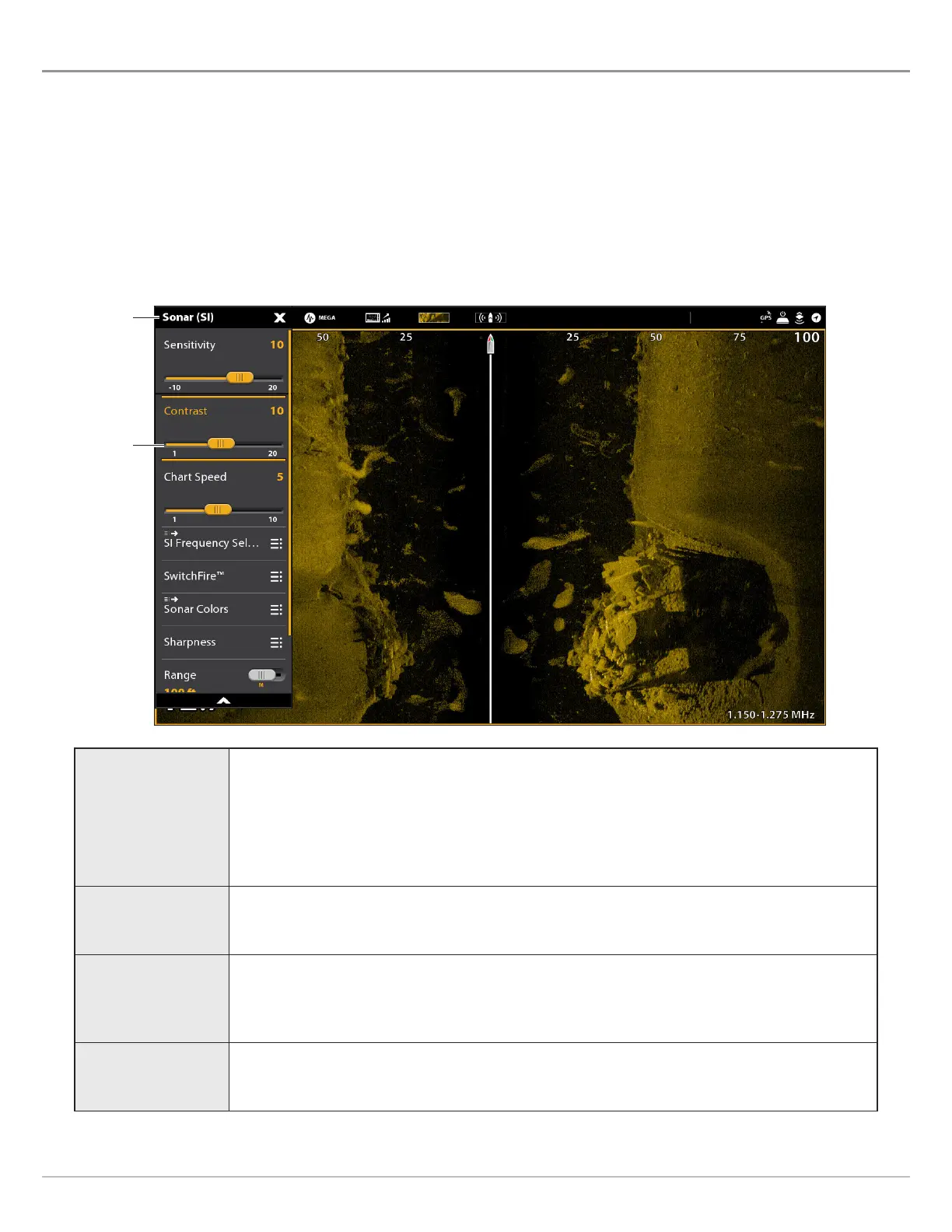 Adjust the Contrast setting to accent the light and dark parts of the Side Imaging data to