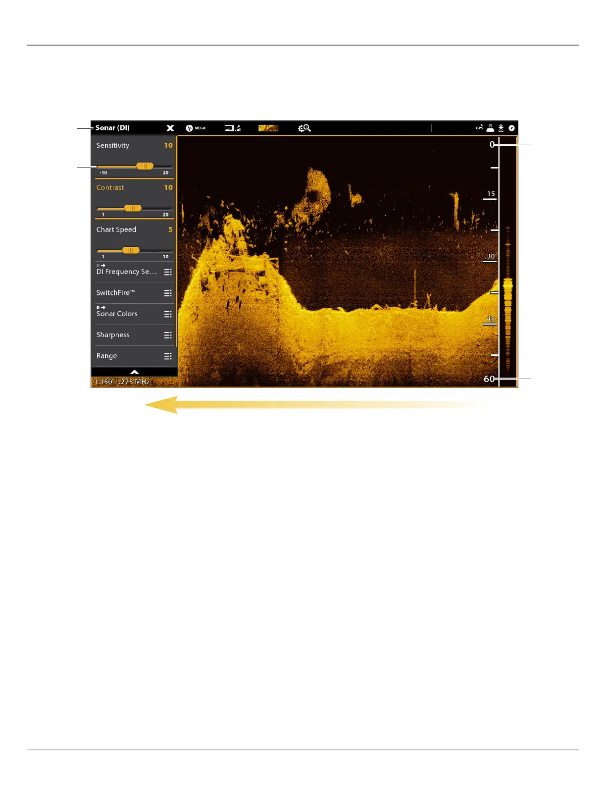 ou can control how fast the sonar history scrolls across the screen. The menu options allow you to see more or less of the sonar