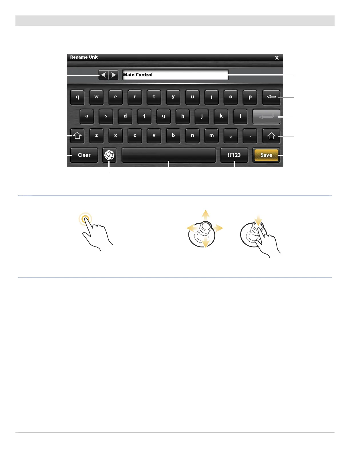 Use the on-screen keyboard to rename the control head in the network, edit your navigation data, and more.