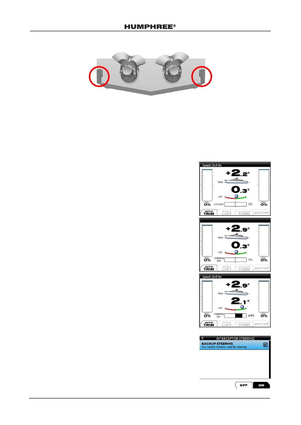 commands, the water jet buckets will start to deect, and the interceptors will contribute with increased steering