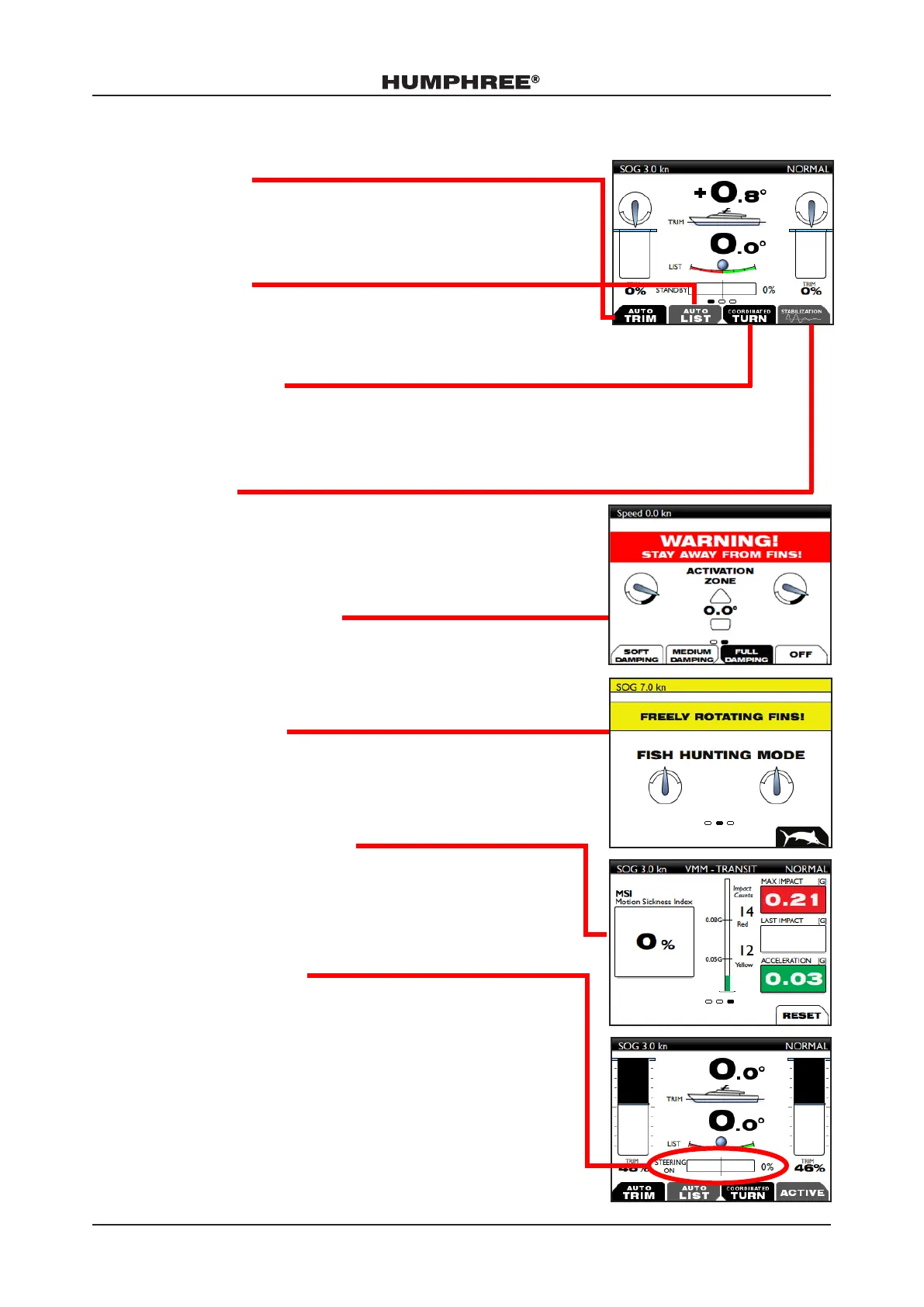 radius. The steering interceptor position bar is seen in the main screen when