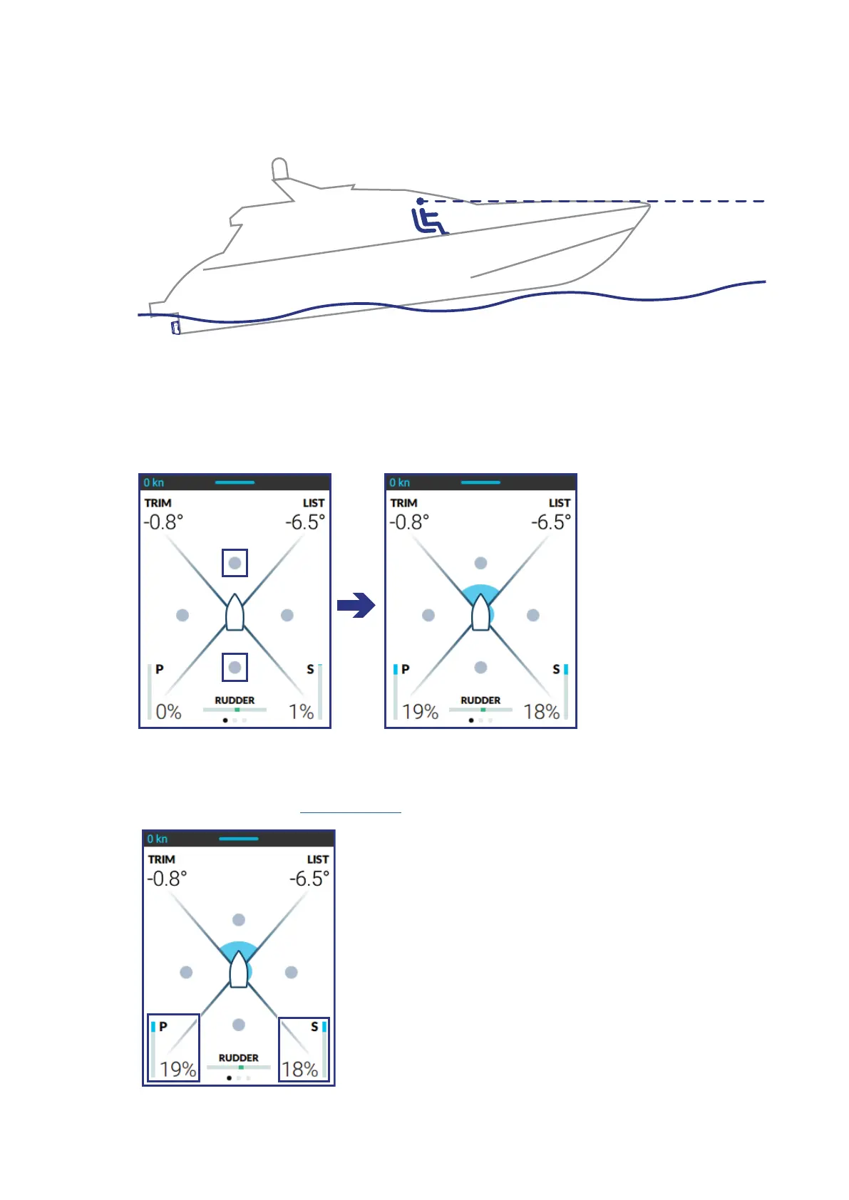 • Use dots on the screen to adjust the trim until visibility is unobstructed.