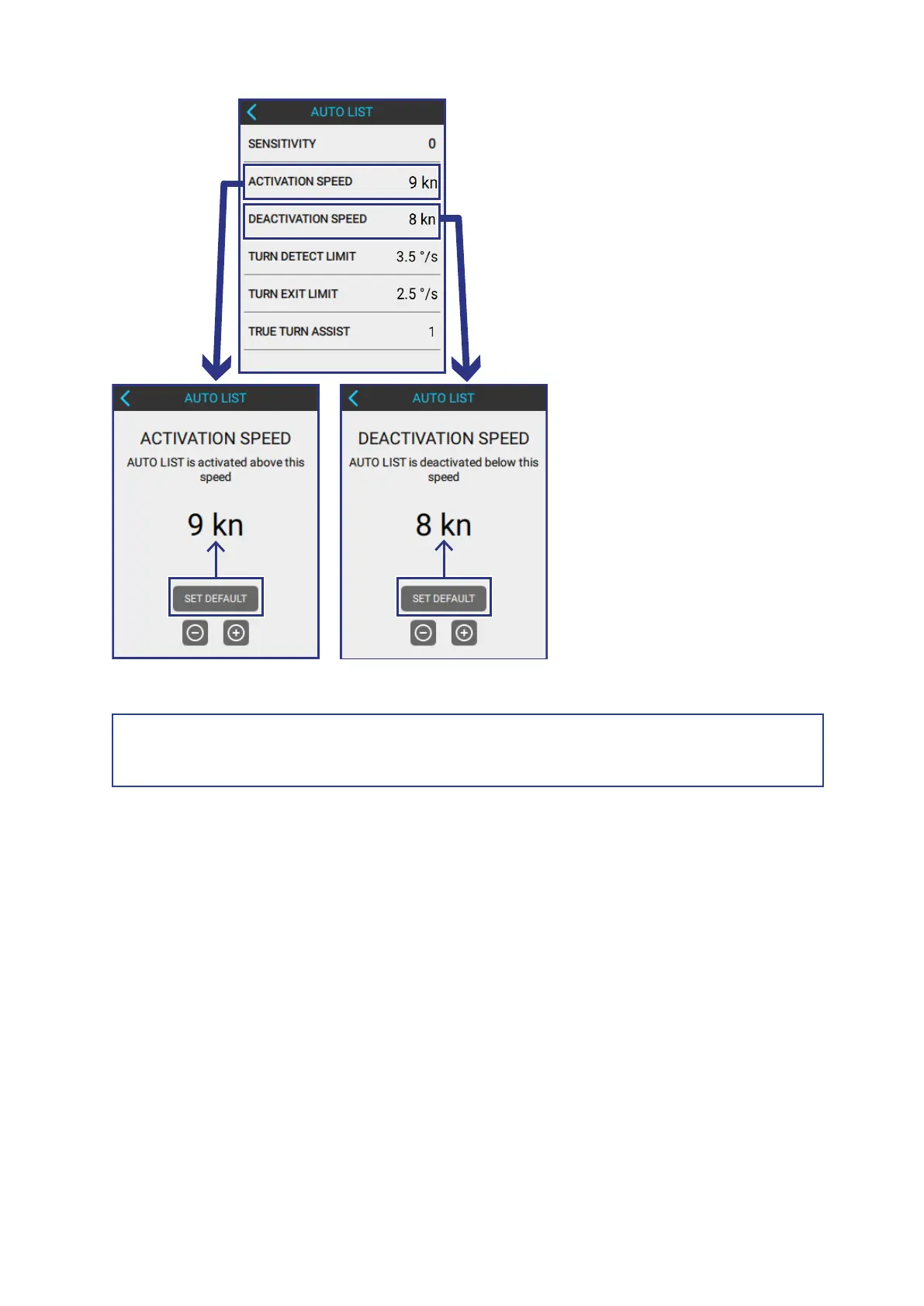 Always set the Deactivation Speed to 1 or 2 knots below the Activation Speed!