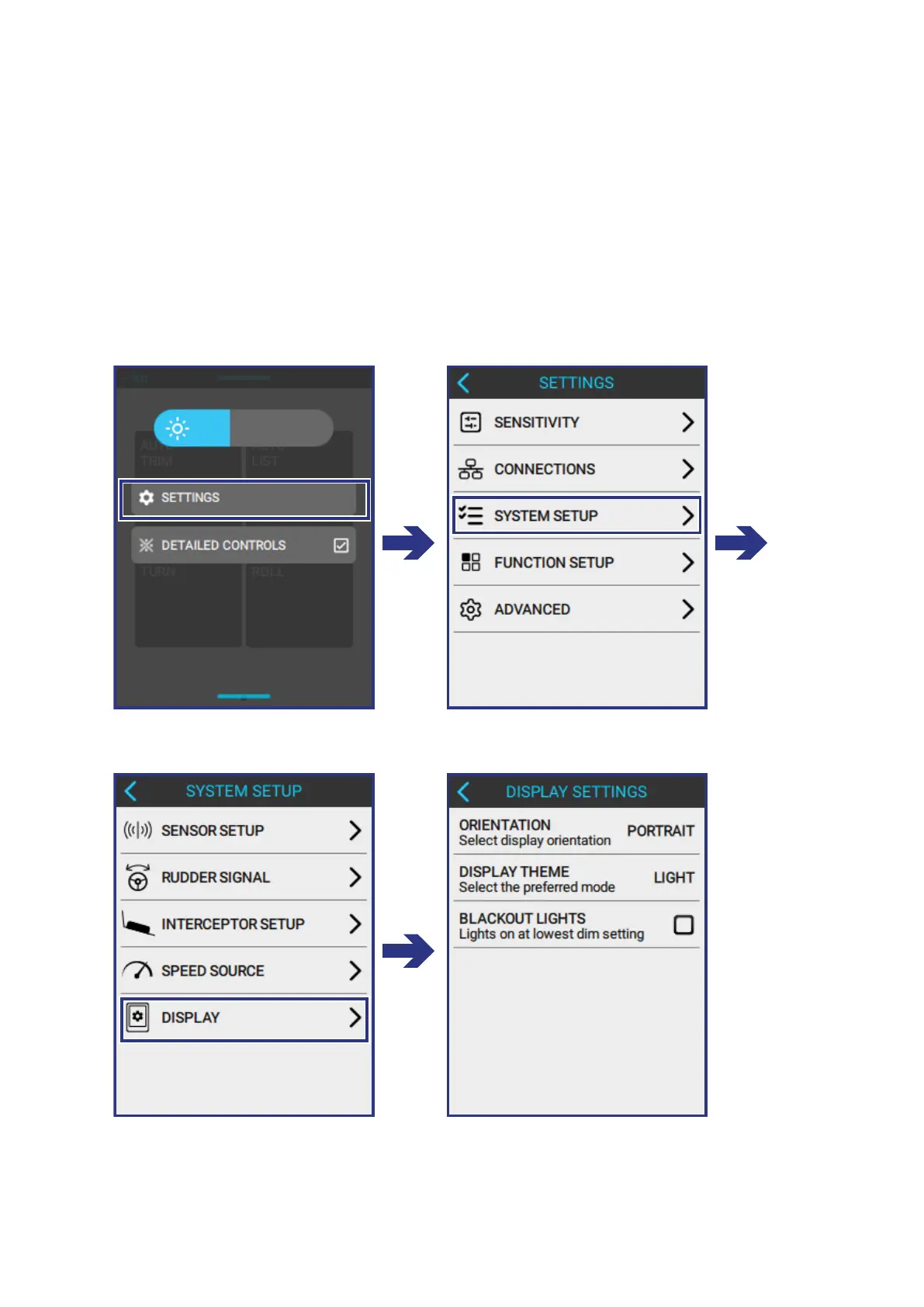 MENU > SETTINGS > SYSTEM SETUP > DISPLAY
