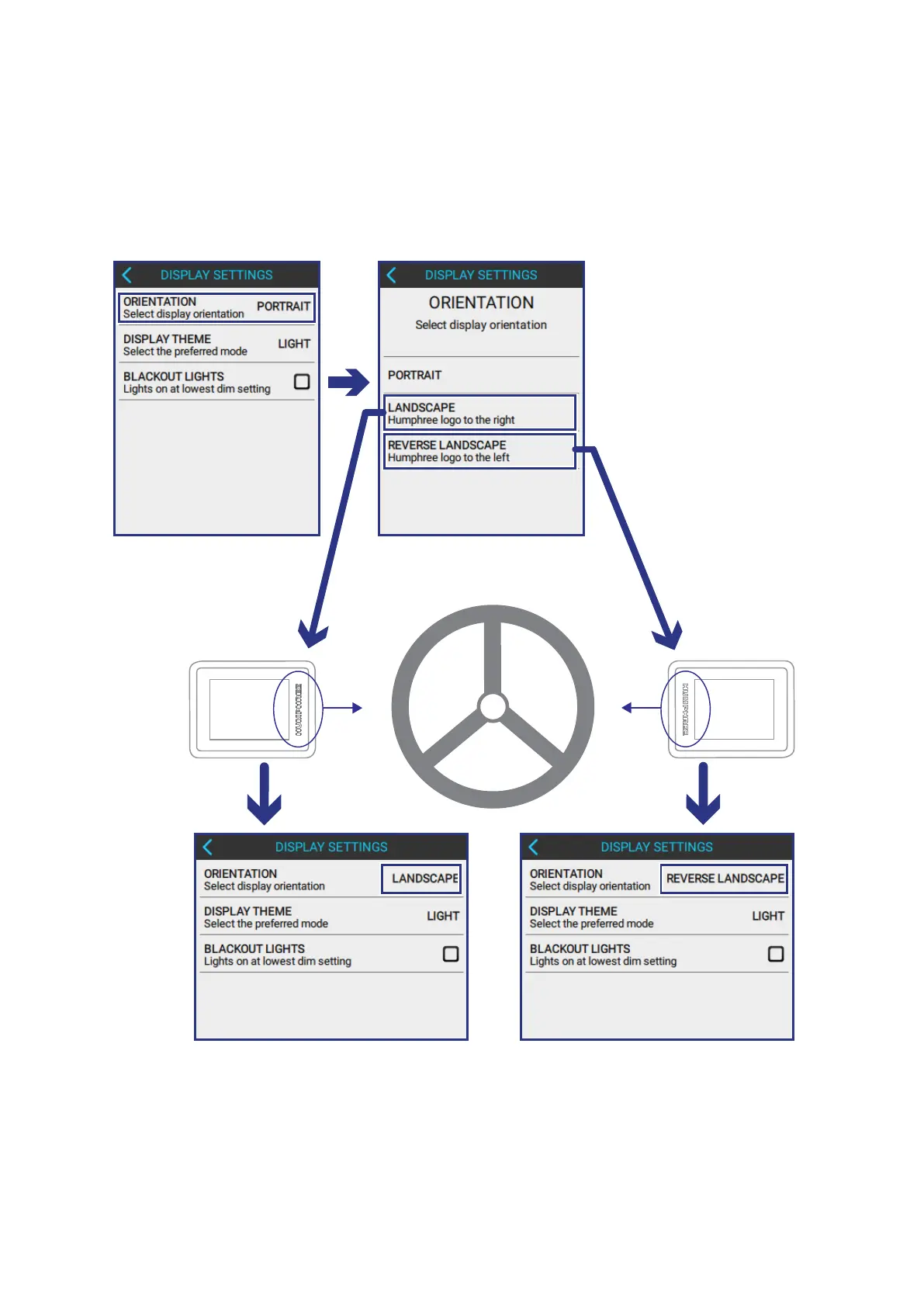 DISPLAY > ORIENTATION > LANSCAPE / REVERSE LANDSCAPE