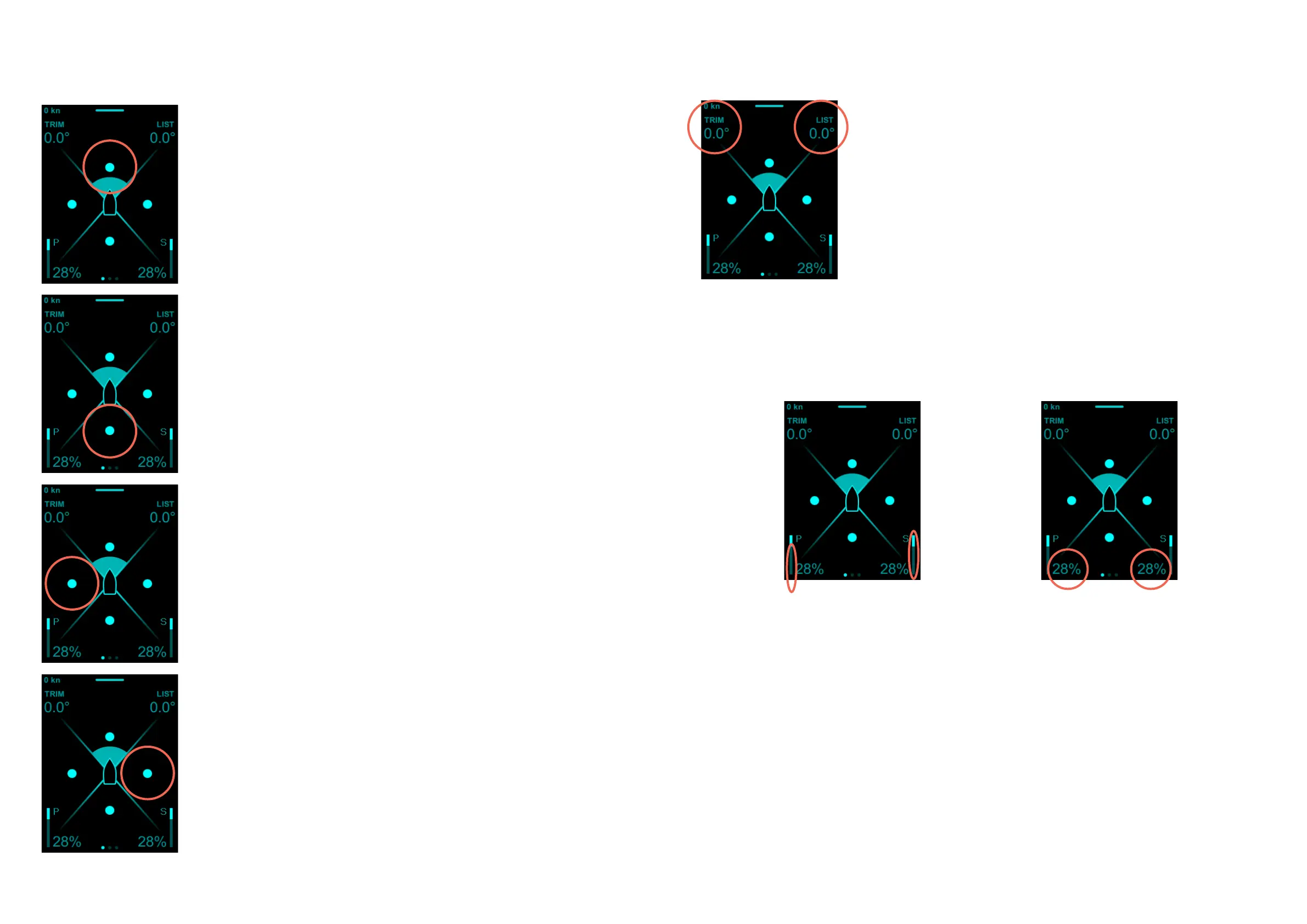 The trim/list angle indicators show the current boat trim