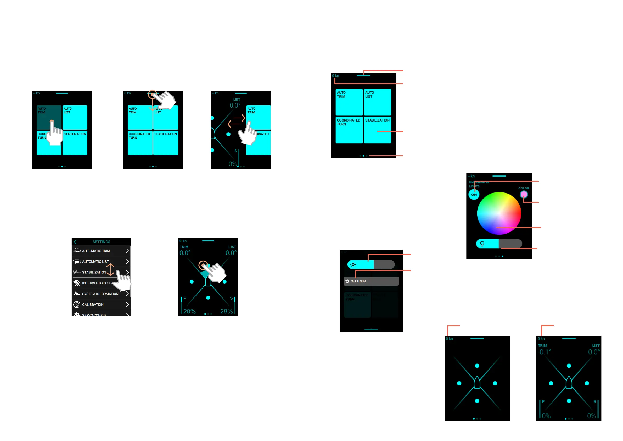 Humphree Lightning - CONTROL PANEL; Touch Screen Gestures; Display Features
