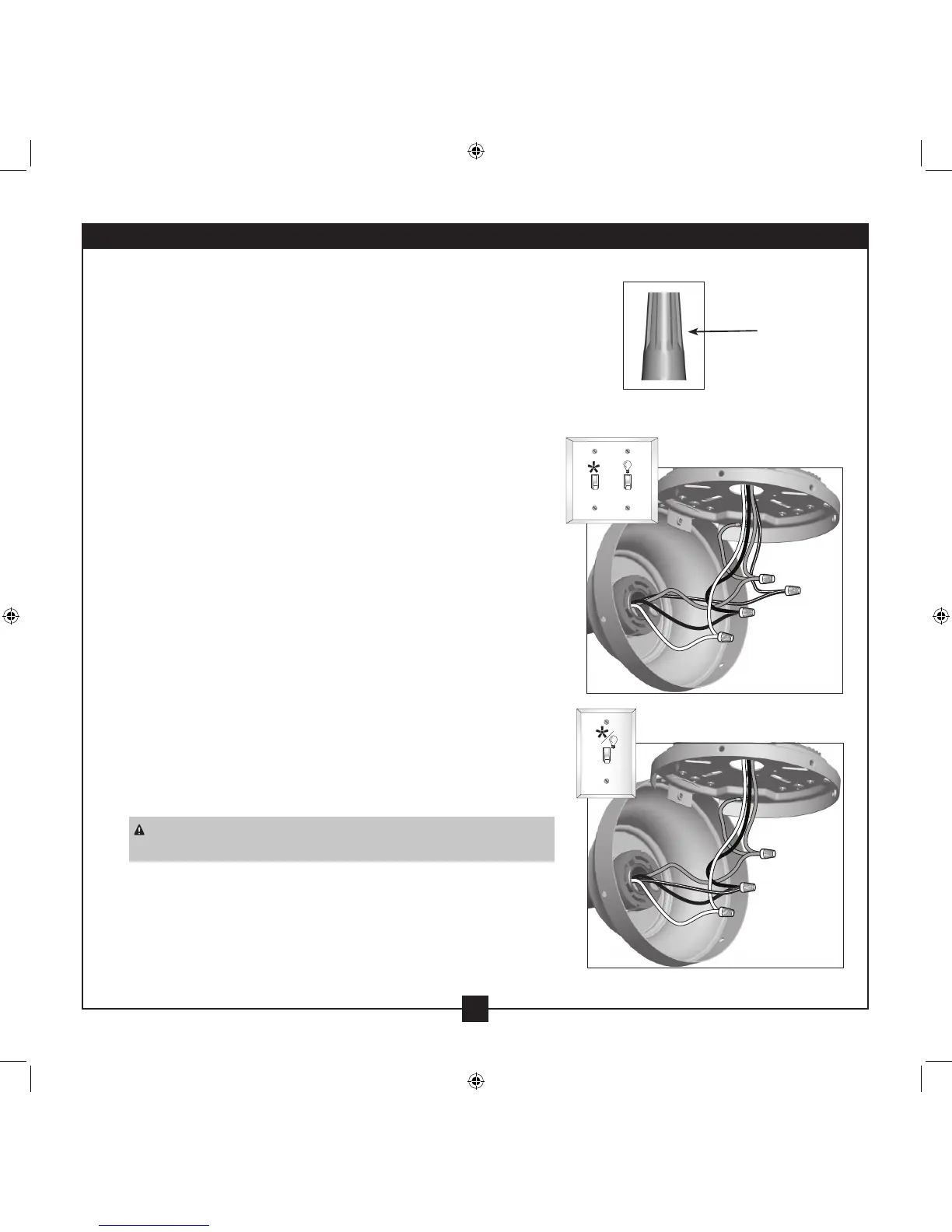 CAUTION: Be sure no bare wire or wire strands are visible after
