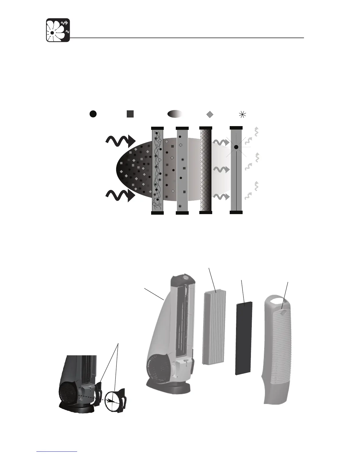 As the air is pulled into the Air Purier, the Pre-Filters capture large particles. Then, the air