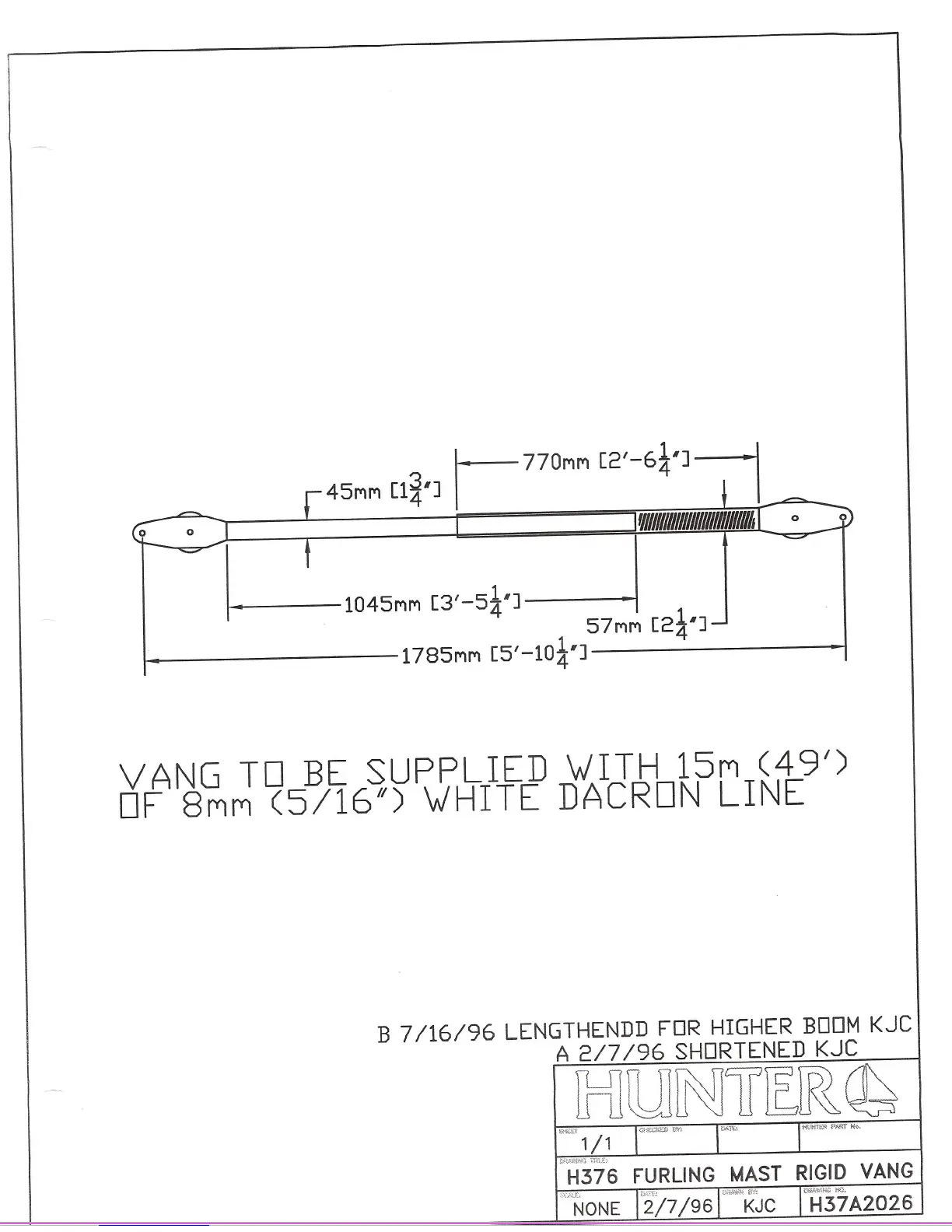 Hunter 380 - H376 Furling Mast Rigid Vang