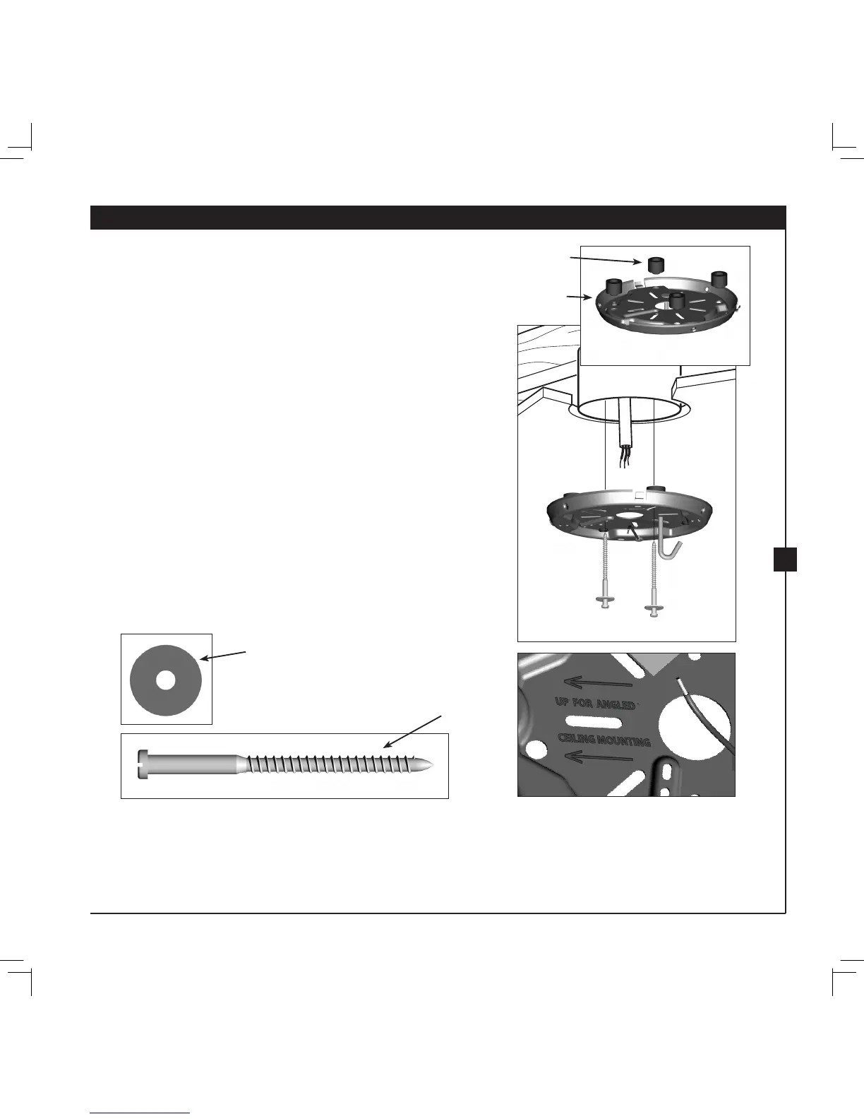 2-4. Align the slotted holes in the ceiling plate with the pilot holes you
