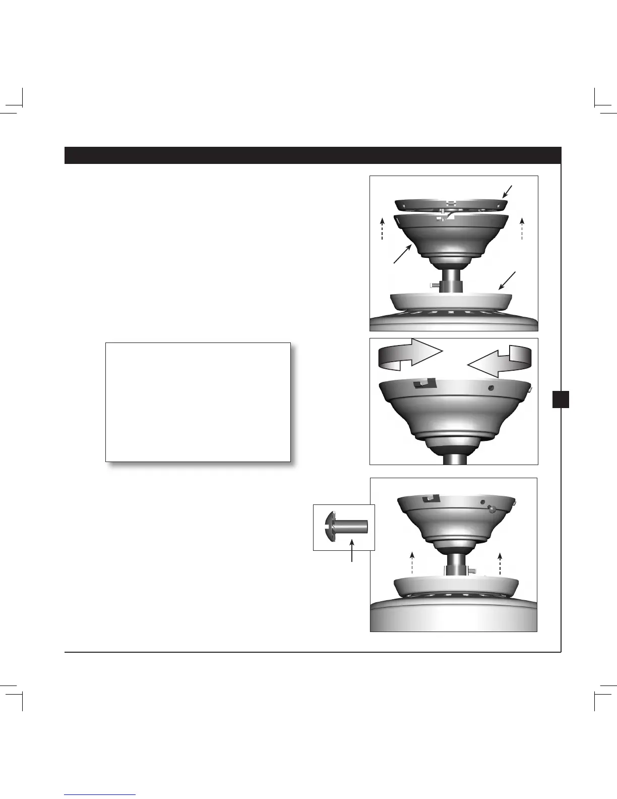6-3. Raise the canopy over the ceiling plate. Rotate the canopy