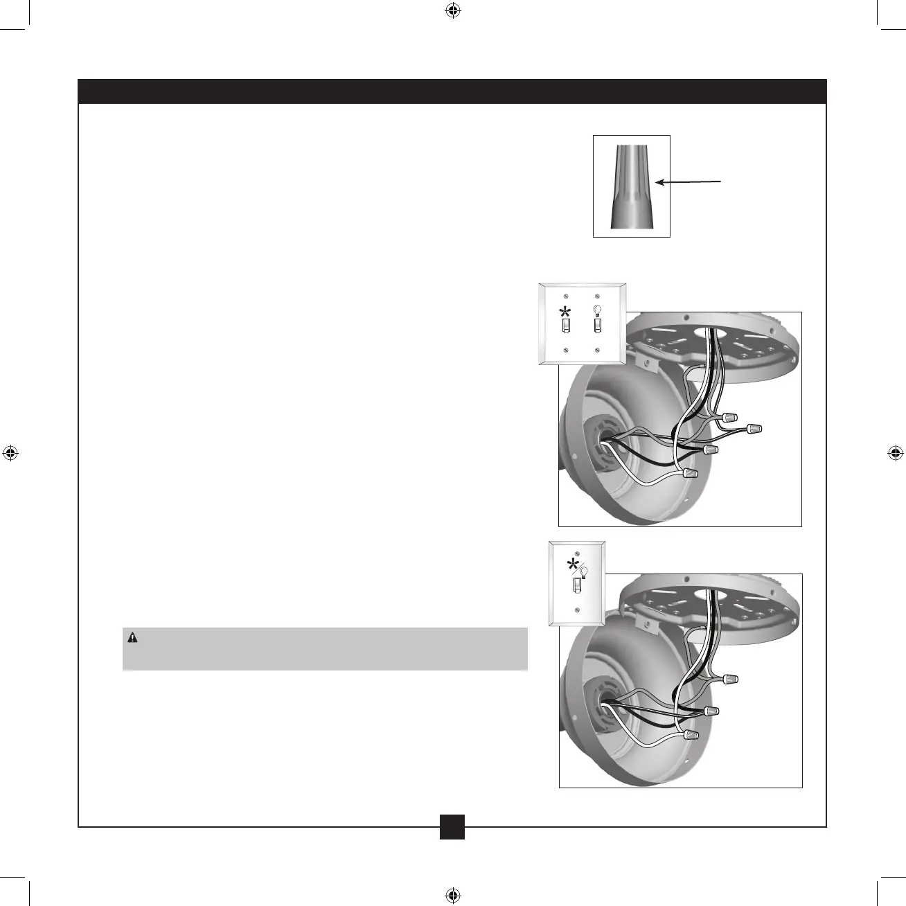 CAUTION: Be sure no bare wire or wire strands are visible after