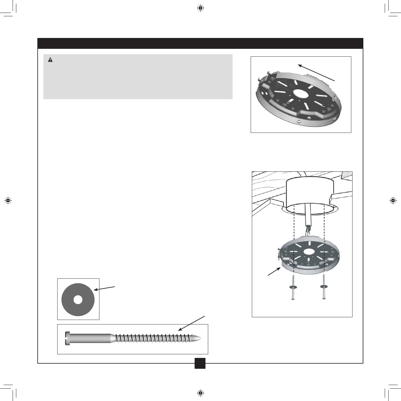 2-5. Align the slotted holes in the ceiling plate with the pilot holes you