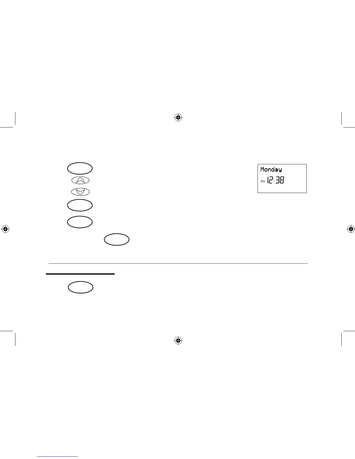 NOTA: Puede presionar en cualquier momento durante el ajuste de día y hora para regresar a la pan-en cualquier momento durante el ajuste de día y hora para regresar a la pan-