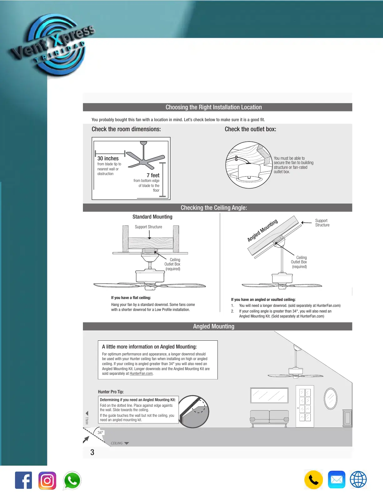 Angled Mounting Kit. (Sold separately at HunterFan.com)